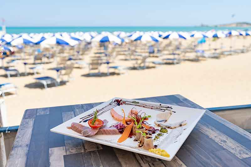 " [...] Sia la piscina che la spiaggia sono dotati di bar/ ristorante dove gustare piatti tipici, panini, buonissime pizze e tanto altro a prezzi davvero onesti. [...] "Noemi Cecere